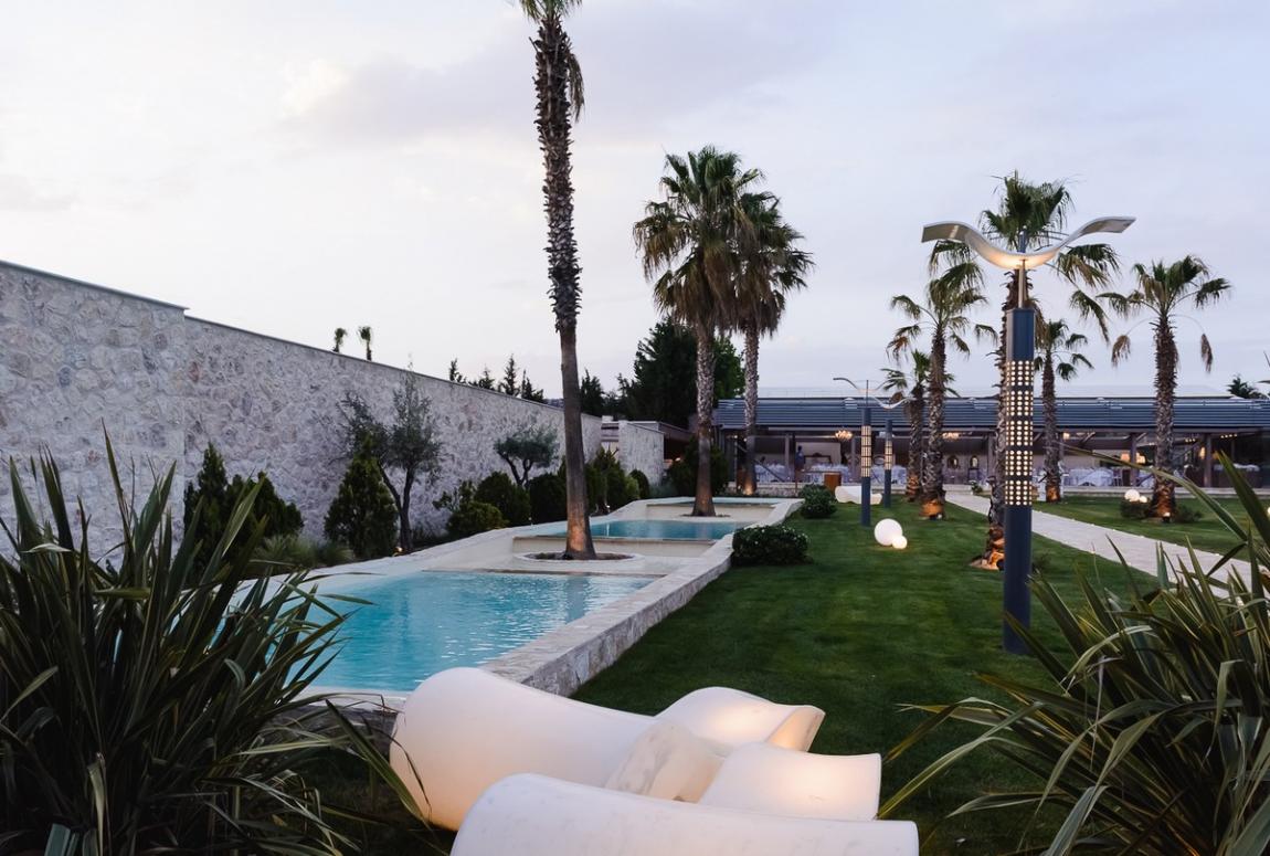Με λίγα λόγια: Ένα παραμυθένιο κτήμα 7,5 στρεμμάτων στην ανατολική Αττική, που πέρα από τον εξωτερικό χώρο με τις πισίνες, τους καταρράκτες και τους φοίνικες, διαθέτει μια αίθουσα χωρητικότητας 320 καθήμενων.