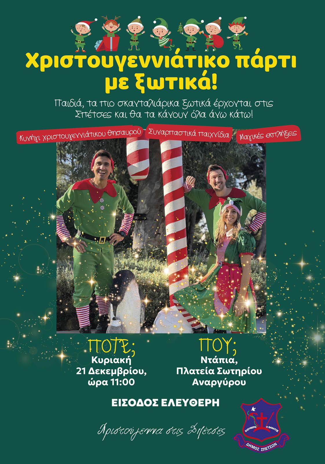 Τι περιλαμβάνει το πρόγραμμα της ημέρας; Κυνήγι χριστουγεννιάτικου θησαυρού, συναρπαστικά παιχνίδια, μαγικές εκπλήξεις και φυσικά ξέφρενο χορό. Με μια φράση, ένα απίθανο χριστουγεννιάτικο πάρτι, που όμοιό του δεν έχει ξαναγίνει! Γι' αυτό, να είστε όλοι εκεί!