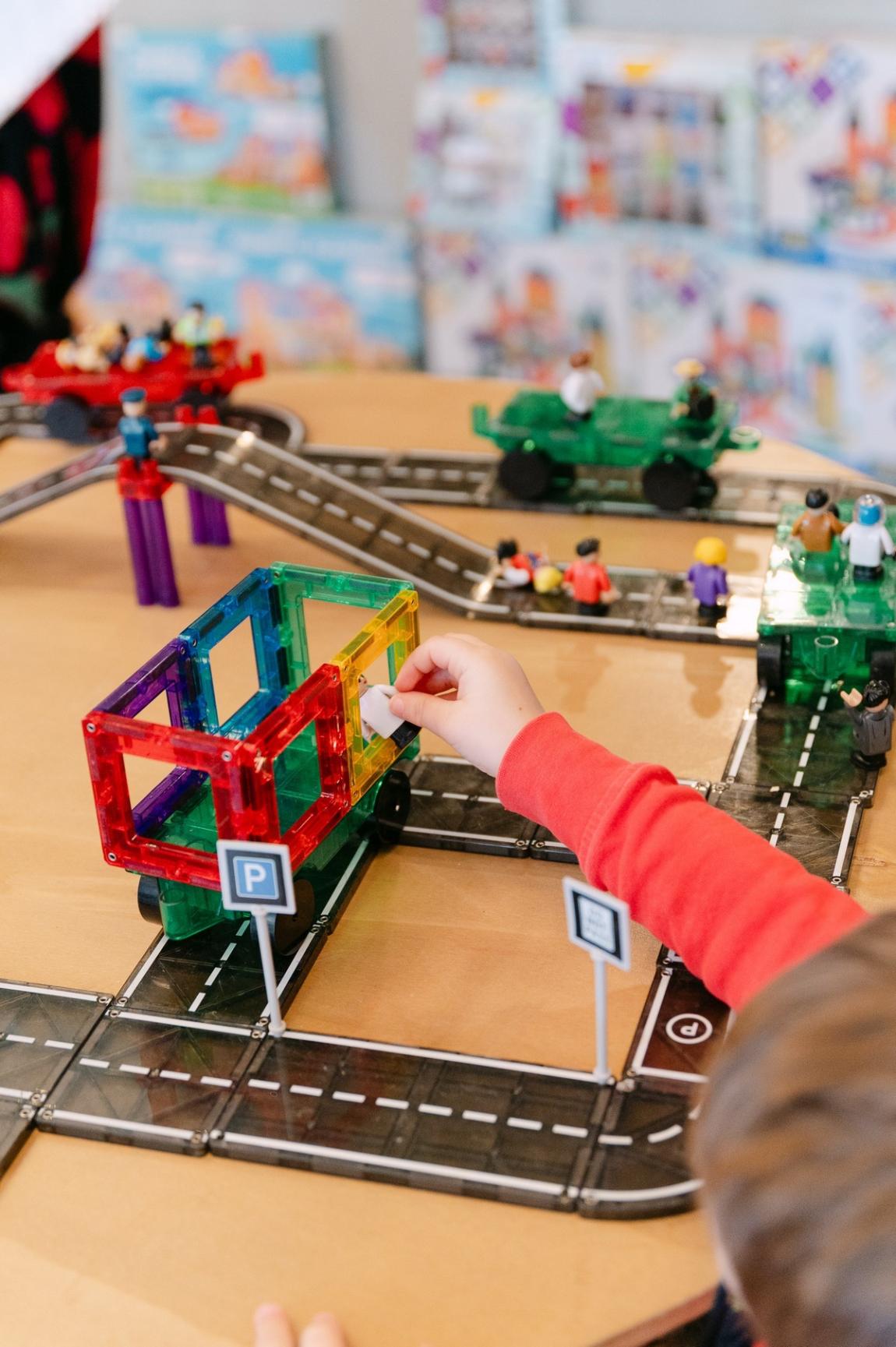 Οι λιλιπούτειοι επισκέπτες του Christmas BOOM Village μεταμορφώθηκαν για λίγο σε αρχιτέκτονες και, με τα μαγνητικά πλακίδια Playmags™, έφτιαξαν από χρωματιστά κτίρια, πύργους, σπίτια μέχρι και πελώριους αυτοκινητόδρομους.