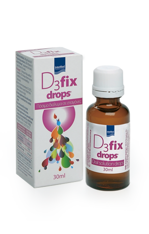 Το D3 Fix Drops είναι λοιπόν, ένα συμπλήρωμα διατροφής βιταμίνης D3 (cholecalciferol) με τη μορφή πόσιμου διαλύματος σε σταγόνες, για την κάλυψη των αυξημένων απαιτήσεων του οργανισμού σε βιταμίνη D3 ή όταν υπάρχει ένδεια αυτής. Και το πιο σημαντικό, στο D3 Fix Drops η βιταμίνη D3 είναι υδατοδιαλυτή εξασφαλίζοντας με τον τρόπο αυτό άριστη απορρόφηση και υψηλή βιοδιαθεσιμότητα.