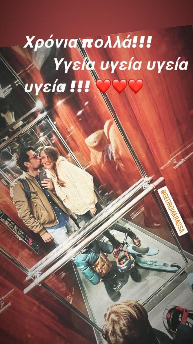 Ο ηθοποιός ευχήθηκε στους διαδικτυακούς φίλους του με μια selfie με τη σύζυγό του μέσα στο ασανσέρ. Ο πρωταγωνιστής της σειράς «Σασμός» δίνει ένα τρυφερό φιλί στην αγαπημένη του, ενώ μπροστά τους βρίσκεται ο γιος τους Αχιλλέας, ο οποίος είναι έτοιμος να φορέσει το κράνος του και να πάει βόλτα με το πατίνι του!