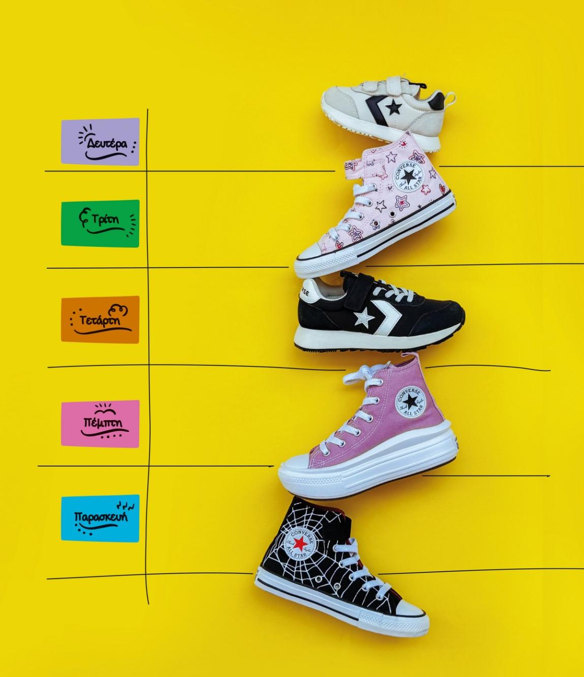 Όποια τάξη κι αν πάμε, από παιδικό σταθμό μέχρι Λύκειο, πάμε κάθε μέρα στο σχολείο με αυτοπεποίθηση και τα πιο cool παπούτσια με την υπογραφή της Converse!