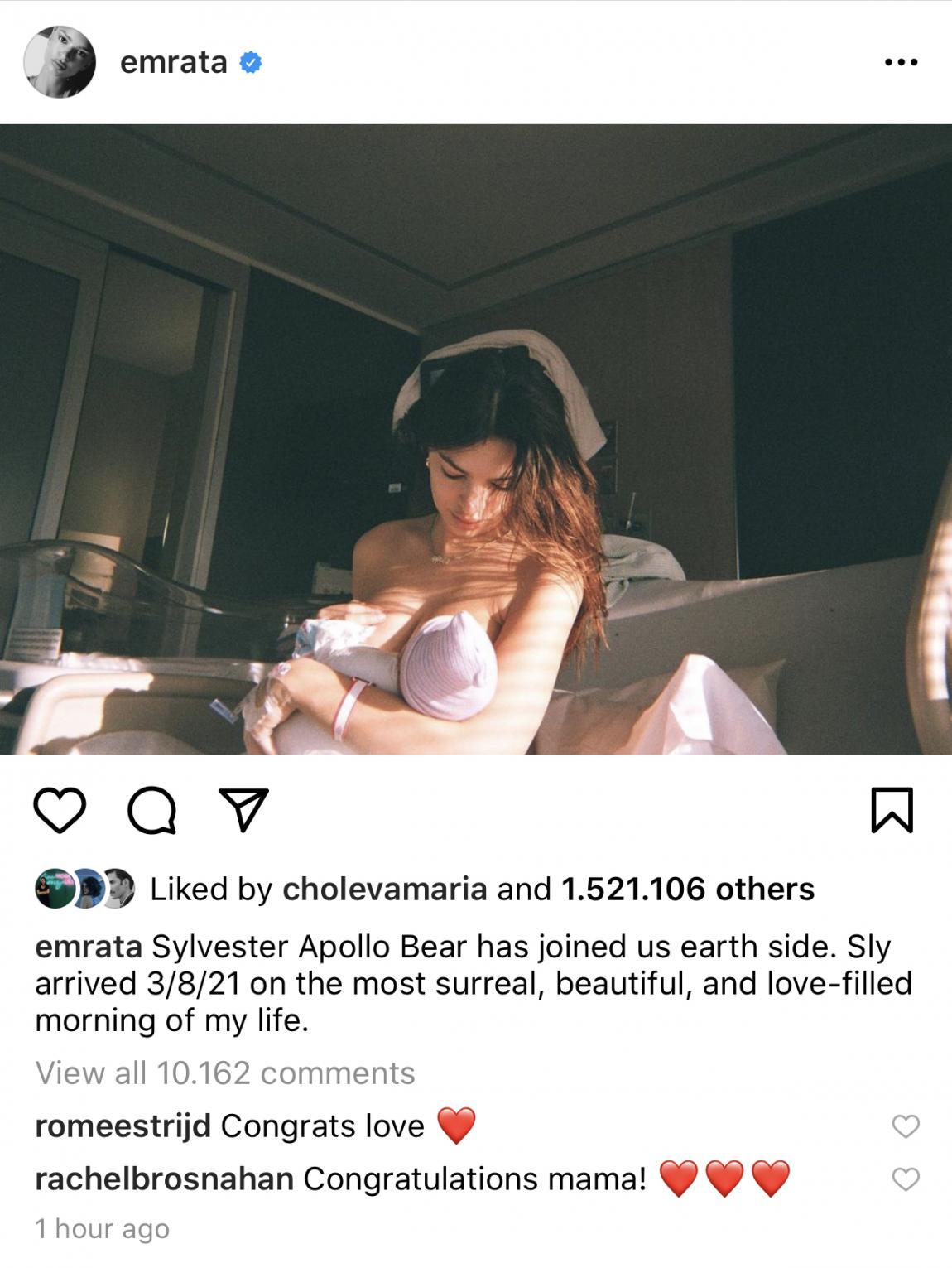 Σε πελάγη ευτυχίας πλέει η Έμιλι Ρατακόφσκι καθώς εδώ και τρεις μέρες κρατάει στα χέρια της το μωρό της! Την είδηση έκανε γνωστή η ίδια, ανεβάζοντας στο instagram την πιο τρυφερή φωτογραφία, ενώ η λεζάντα έγραφε: