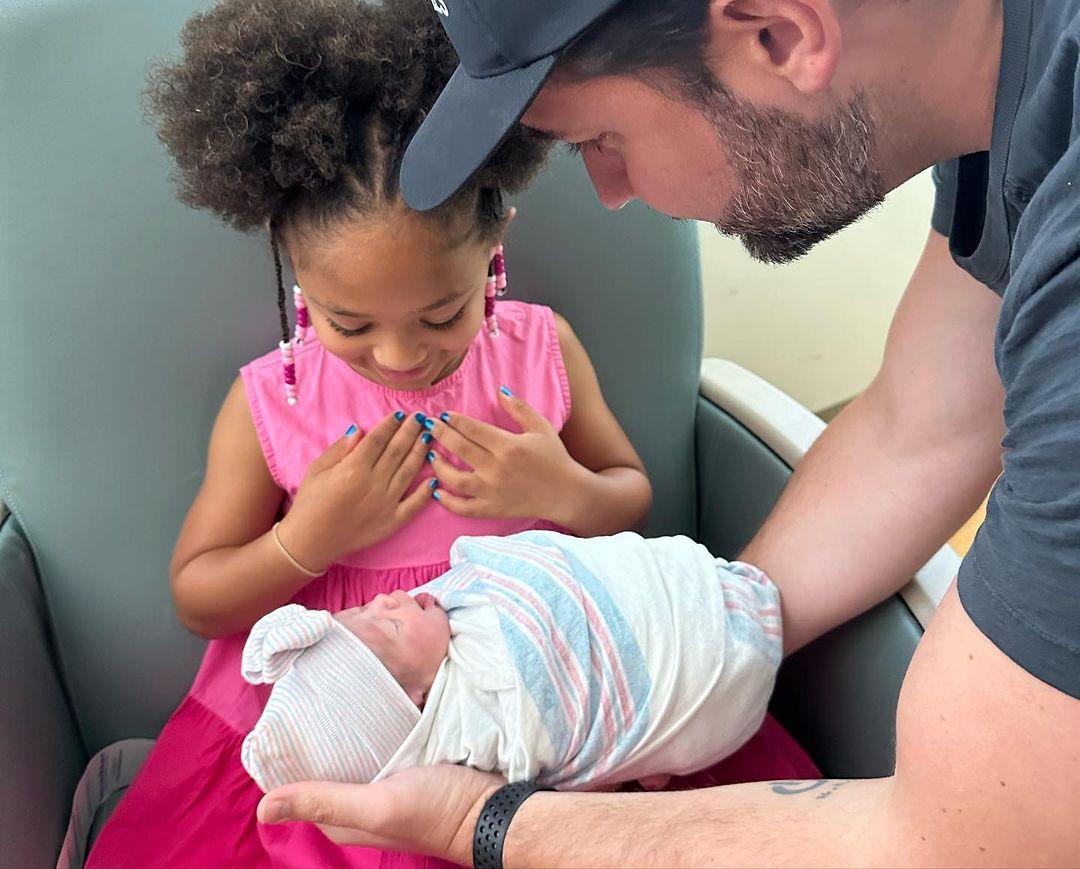 Από την πλευρά της, η διάσημη μαμά μοιράστηκε ένα χαριτωμένο βίντεο στο TikTok με την ίδια, τον σύζυγό της, την 5χρονη κόρη τους Olympia και το νεογέννητο μωρό, γράφοντας: «Καλώς ήρθες όμορφο αγγελούδι μου».