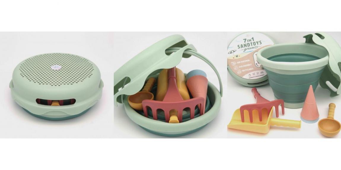 7 in 1 Sand Τoys Green Organic | CompacToys Το κουβαδάκι που λατρεύουν γονείς και παιδιά, σε νέα, eco-friendly εκδοχή, κατασκευασμένο από ανθεκτικό πλαστικό από ζαχαροκάλαμο! Χωράει ένα πλήρες σετ παιχνιδιών παραλίας και πιάνει ελάχιστο χώρο.
