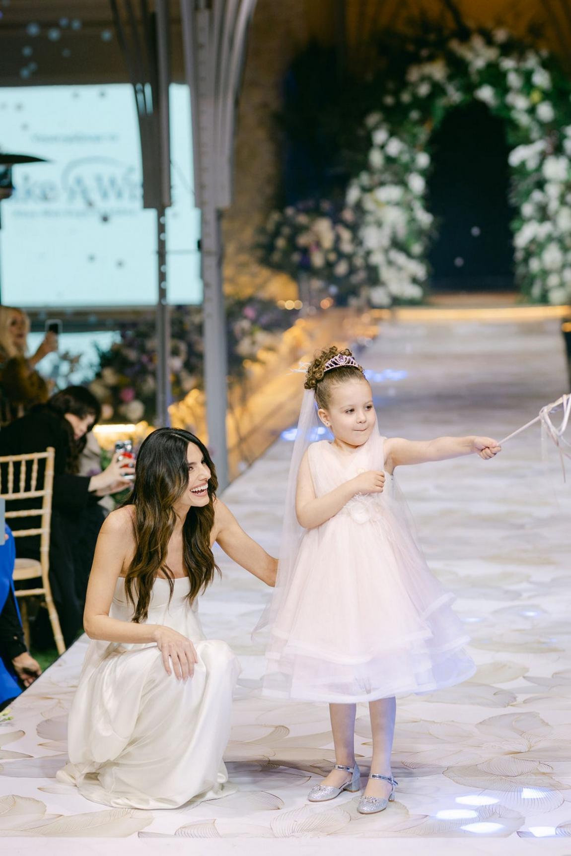 Η Ηλιάνα Παπαγεωργίου, από τα πρώτα κιόλας δευτερόλεπτα που εμφανίστηκε στη σκηνή, έκλεψε τις εντυπώσεις, όχι μόνο για το εκθαμβωτικό σύνολό της, αλλά και για την τρυφερότητά της απέναντι στην 5χρονη Μαρία-Φανουρία.
