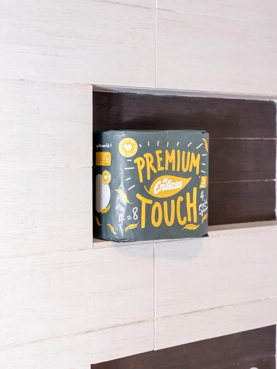 Premium Touch: Αν αναζητάτε την πολυτέλεια στα πάντα, το ρολό υγείας Premium Touch είναι για εσάς: Τρεις στρώσεις από χαρτί υψηλής ποιότητας, πολύ μεγάλη διάρκεια και απορροφητικότητα. Σε χάρτινη, ανακυκλώσιμη συσκευασία, για να βάλουμε ο καθένας το λιθαράκι του και να εξασφαλίσουμε ένα καλύτερο μέλλον για τα παιδιά μας.