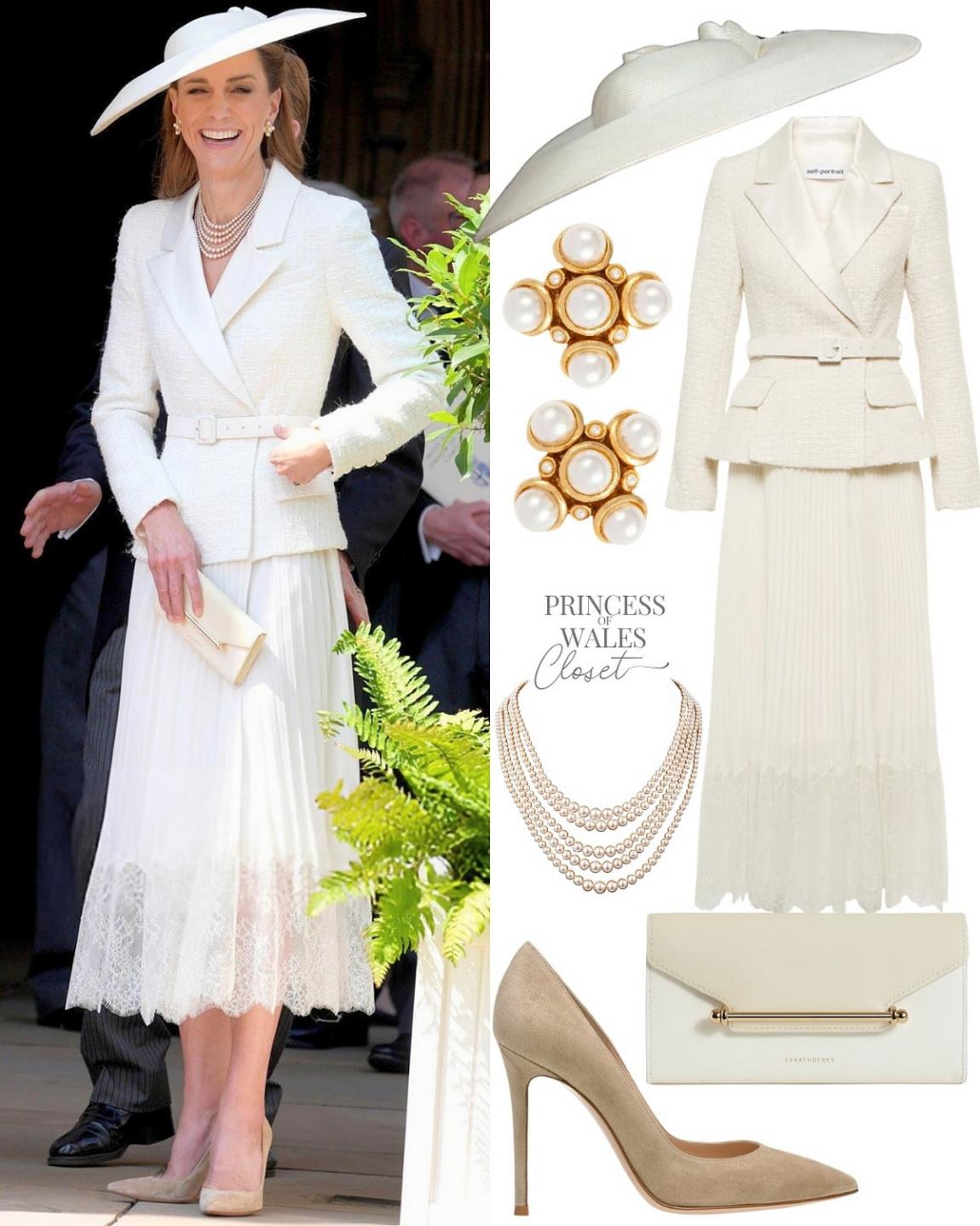 Η Kate Middleton τρελαίνεται για το brand Self-Portrait, και κυρίως για αυτό το λευκό, πλισέ φόρεμα με δαντέλα, το οποίο δεν έχει φορέσει ούτε μία, ούτε δύο, αλλά πολλές περισσότερες φορές. Εδώ, τη βλέπουμε τον Ιούνιο του 2025, να το φορά στην ετήσια τελετή του Τάγματος της Περικνημίδας, και να το έχει συνδυάσει με λευκό σακάκι με ζώνη στη μέση, καπέλο στην ίδια απόχρωση και nude γόβες. Too elegant to handle!
