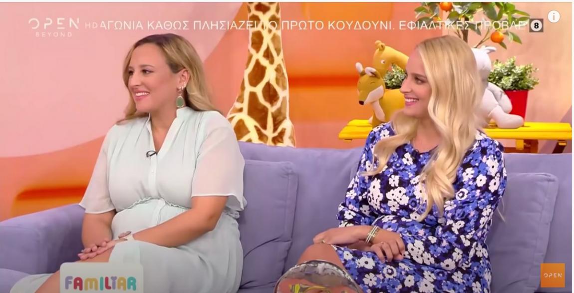 Οι εγκυμονούσες αδερφές έκαναν… ποδαρικό στην εκπομπή Familiar του Open και μίλησαν με την Μυρτώ Κάζη και τον Ετεοκλή Παύλου για την οικογένεια, την πρώτη ημέρα των παιδιών στο σχολείο, τον ρόλο του συντρόφου κατά τη διάρκεια μιας εγκυμοσύνης, καθώς για το αν θα επιθυμούσαν να αποκτήσουν και τρίτο παιδάκι.