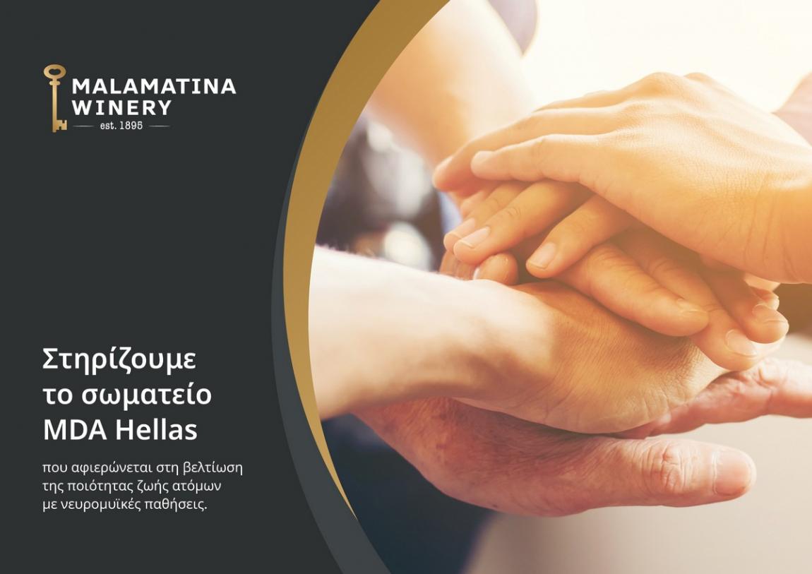 Η Οινοποιία Μαλαματίνα, μέλος του Ομίλου Mantis, αναγνωρίζοντας τη σημασία της κοινωνικής προσφοράς, προχώρησε σε στήριξη του φιλανθρωπικού σωματείου MDA Hellas, που αφιερώνεται στη βελτίωση της ποιότητας ζωής ατόμων με νευρομυϊκές παθήσεις. Η χορηγία θα καλύψει μέρος των λειτουργικών αναγκών του σωματείου, συμβάλλοντας στη διασφάλιση της απρόσκοπτης παροχής εξειδικευμένων υπηρεσιών προς τα μέλη του.