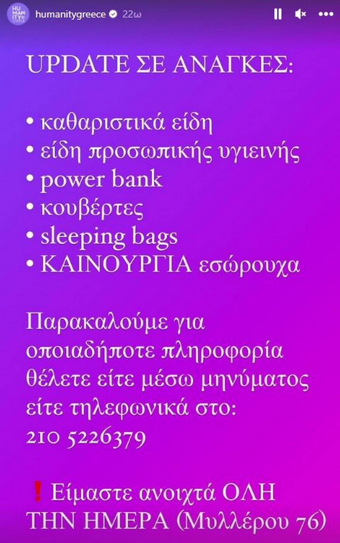 Η Humanity Greece σε ανακοίνωσή της αναφέρει ότι χρειάζονται: