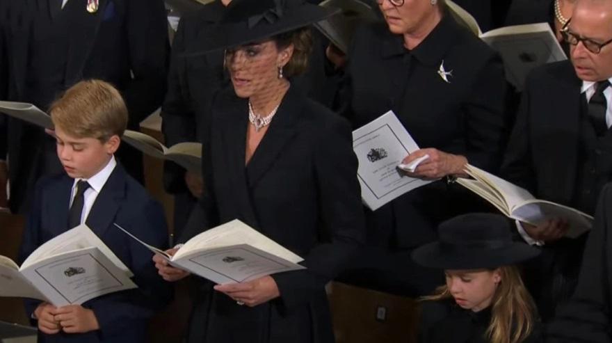 Τα δύο μεγαλύτερα παιδιά του πρίγκιπα William και της πριγκίπισσας Kate, ο 9χρονος George και η 7χρονη Charlotte παρευρέθηκαν στη νεκρώσιμη ακολουθία της βασίλισσας Ελισάβετ, ανάμεσα στους 2.000 επίσημους προσκεκλημένους και εκπροσώπους κρατών από όλο τον κόσμο. Τα δύο αδέρφια έφτασαν στο Αββαείο του Westminster κρατώντας τα χέρια των γονιών τους, περίπου μισή ώρα πριν από την έναρξη της τελετής, για να αποχαιρετήσουν την αγαπημένη τους προγιαγιά, την οποία χαϊδευτικά αποκαλούσαν "Gan Gan", και κάθισαν στην πρώτη σειρά όπου έψαλλαν ύμνους στη μνήμη της.