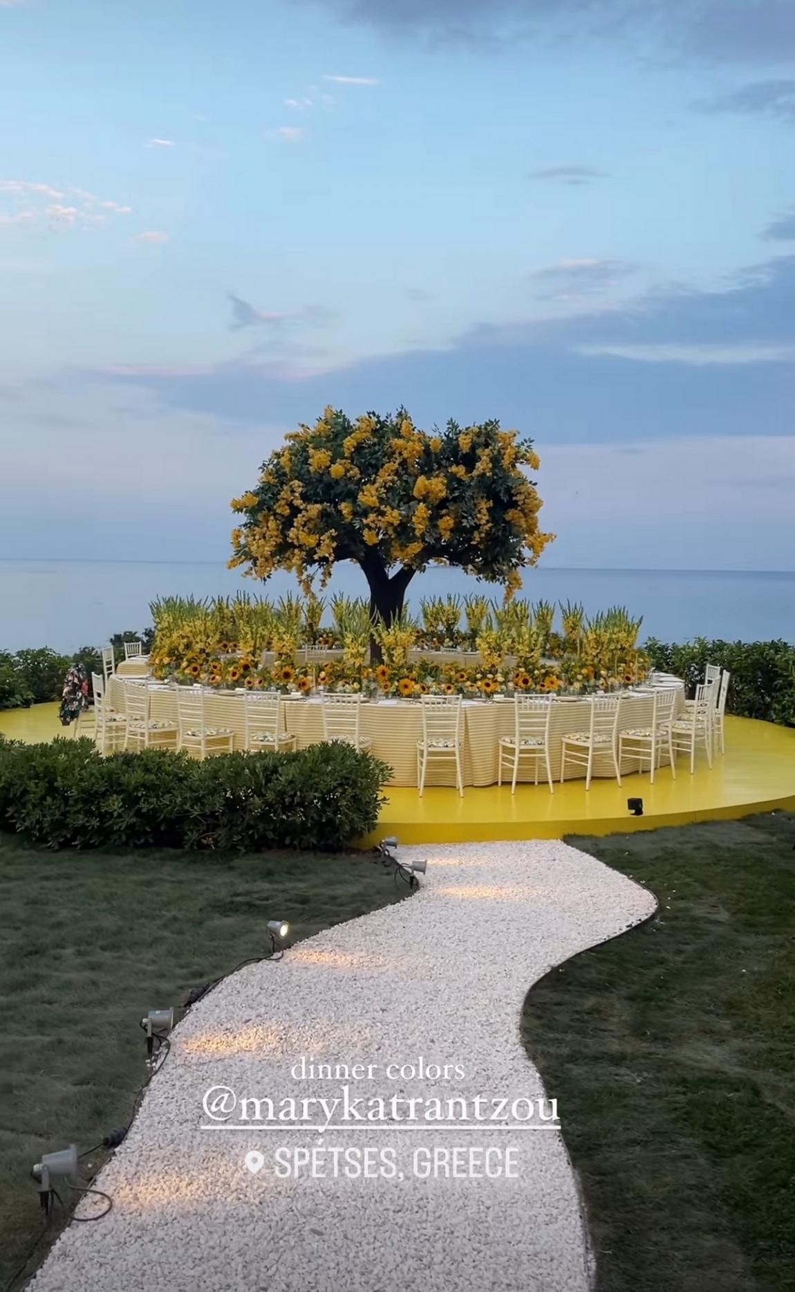 Αμέσως μετά το μυστήριο ακολούθησε δεξίωση σε ένα ειδυλλιακό μέρος με απίστευτη θέα στη θάλασσα. Η διακόσμηση με τα τέσσερα ανθοστολισμένα τραπέζια σε κόκκινες, κίτρινες, πράσινες και μπλε αποχρώσεις, αλλά και το tableware με τα signature patterns της σχεδιάστριας δημιούργησαν το απόλυτο σκηνικό για την πιο ευτυχισμένη ημέρα της οικογένειας.