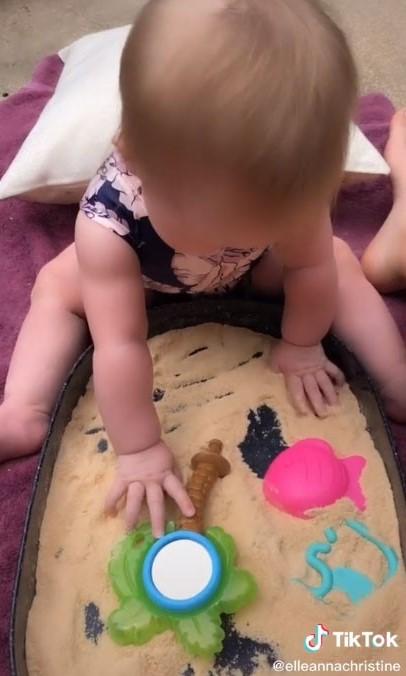 Η Elle Anna Christine, η viral μαμά, δήλωσε πως στην περιοχή που μένει δεν υπάρχουν κοντινές παραλίες. Έτσι εμπνεύστηκε την ιδέα ώστε η 7 μηνών κόρη της να μπορεί να παίξει με ασφάλεια με την άμμο και η μικρή έχει ξετρελαθεί!