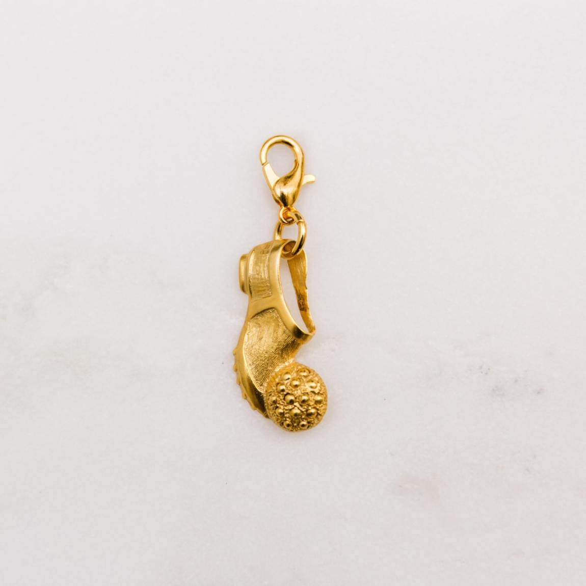 Μουσείο Κυκλαδικής τέχνης, επίχρυσο κόσμημα εμπνευσμένο από την επέτειο των 200 χρόνων από το 1821. Το πιο διαδεδομένο υπόδημα των χωρικών της ηπειρωτικής Ελλάδας μέχρι τον 19ο – αρχές 20ου αιώνα, για να μπούμε στη νέα χρονιά με το δεξί! Το τσαρούχι έγινε ιστορικό σύμβολο του αγώνα από την ενδυμασία των αγωνιστών του 1821.