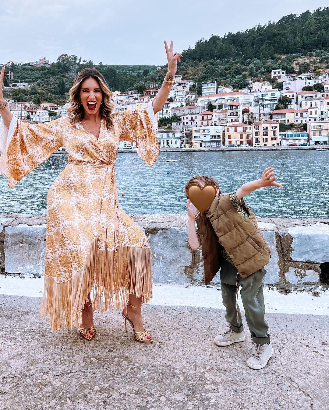Εκτός από τις χαριτωμένες φωτογραφίες με τη νεοφώτιστη και τους γονείς της, η ηθοποιός και επιχειρηματίας δημοσίευσε φωτογραφίες με τα δύο παιδιά της, τον 5χρονο Μάξιμο και τη 2 ετών Σιέννα με φόντο το γραφικό τοπίο του Γυθείου.