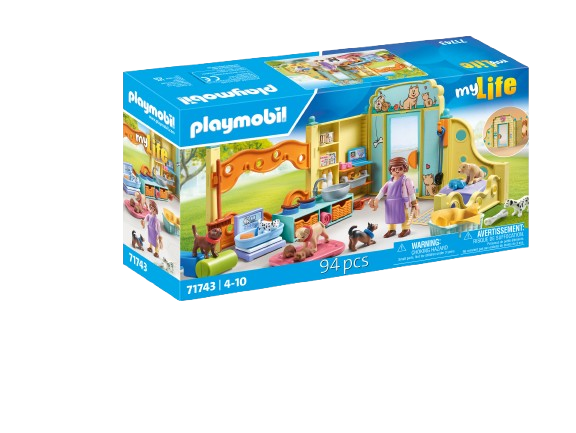 Στο PLAYMOBIL Ξενοδοχείο μικρών ζώων, κάθε επισκέπτης απολαμβάνει φροντίδα πέντε αστέρων! Με ξεχωριστούς χώρους για σκύλους, γάτες, ακόμα και έναν παιχνιδιάρη παπαγάλο, υπάρχει χώρος για όλους ώστε να νιώσουν σαν στο σπίτι τους. Οι σκύλοι μένουν σε άνετα κλουβιά και έχουν έναν σταθμό πλυσίματος με λειτουργικό ντους χειρός, ενώ οι γάτες χαλαρώνουν σε αιώρες ή κυνηγούν παιχνίδια. Οι μικροί φροντιστές μπορούν να προσαρμόσουν τις ταΐστρες με τα ονόματα που περιλαμβάνονται, να διακοσμήσουν το ξενοδοχείο όπως τους αρέσει και να περάσουν ατέλειωτες ώρες δημιουργικού παιχνιδιού!