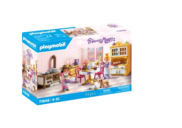 Δίσκο, πλάστη, ένα βιβλίο με βασιλικές συνταγές, περίτεχνα έπιπλα κουζίνας, τα πιο σύγχρονα εργαλεία μαγειρικής και πολλές γλυκές και αλμυρές λιχουδιές, ακόμα και μια πυραμίδα από μακαρόνια περιλαμβάνει αυτό το υπέροχο σετ, που είναι ό,τι πρέπει για δημιουργικό παιχνίδι. Οι μικρές πριγκίπισσες δεν έχουν παρά να φορέσουν τις ποδιές τους και να ξεκινήσουν τη μαγειρική, ενώ το σκυλάκι της αυλής θα περιμένει ανυπόμονα ένα νόστιμο ψίχουλο, και το ποντίκι κρυφοκοιτάζει… όλο και κάτι θα περισσέψει και για εκείνο!