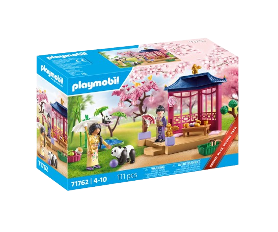 Στο όμορφο κιόσκι, ανάμεσα σε μία λιμνούλα, ζωηρά άνθη κερασιάς και καταπράσινα φυτά μπαμπού, όλα είναι έτοιμα για την τελετή τσαγιού. Καθίστε σε μαλακά μαξιλάρια και δοκιμάστε γλυκές ασιατικές λιχουδιές με τα ξυλάκια σας! Λίγο πιο πέρα, χαρούμενα πάντα παίζουν δίπλα στη λιμνούλα με τα ψάρια και περιμένουν να τα ταΐσετε μήλα, σπόρους ή μπαμπού. Ένας μαγικός χώρος για να εξοικειωθούν τα παιδιά με άγνωστους θαυμαστούς πολιτισμούς, να βοηθήσουν στη φροντίδα του τοπίου, να σερβίρουν γλυκά με τα chopsticks, να ταΐσουν τα μικρά πάντα και να αφοσιωθούν σε ένα συναρπαστικό παιχνίδι ρόλων.