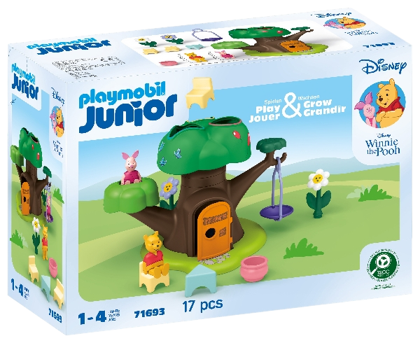 Στην είσοδο του σπιτιού θα μας καλωσορίσουν οι αξιολάτρευτοι χαρακτήρες της Disney, ο Γουίνι και ο Πίκλετ, όπου θα ενθαρρύνουν τα παιδιά να δημιουργήσουν τις δικές τους ιστορίες μέσα από ένα παιχνίδι ρόλων. Στη συνέχεια, θα ανακαλύψουμε τις λειτουργίες του δεντρόσπιτου. Στην κορυφή του δέντρου υπάρχουν σφηνώματα με τρία διαφορετικά γεωμετρικά σχήματα που βοηθούν τα παιδιά να αναπτύξουν τις κινητικές τους δεξιότητες και την τρισδιάστατη σκέψη. Η τσουλήθρα στο εσωτερικό του σπιτιού επιτρέπει στα αντικείμενα να επανεμφανιστούν στο κάτω μέρος του δέντρου και οι εκπλήξεις συνεχίζονται… Περιστρέψτε το φύλλωμα του ενός κλαδιού για να κάνετε θορύβους ή του άλλου κλαδιού για να το μετατρέψετε σε μία περιστρεφόμενη κορυφή όπου μπορεί να καθίσει μία φιγούρα!