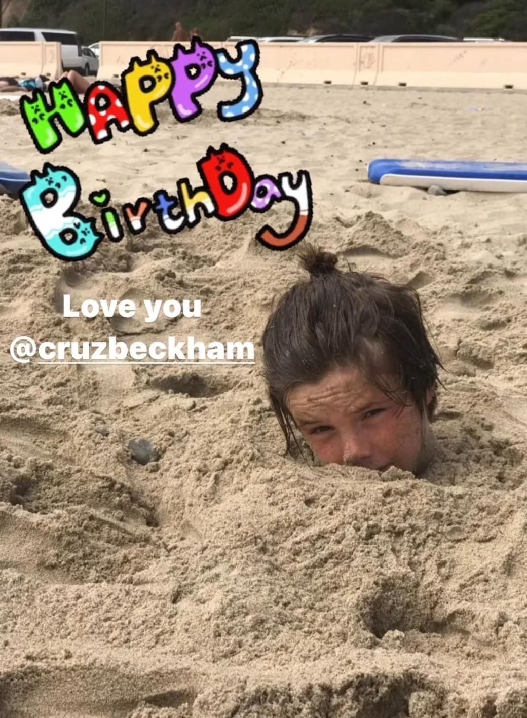 «Αγαπημένε Cruz, σε αγαπάμε τόσο πολύ. Χρόνια πολλά από τη μαμά, τον μπαμπά, τον Brooklyn, τον Romeo και τη Harper», ήταν το γλυκό μήνυμα πάνω στην τεράστια τούρτα.