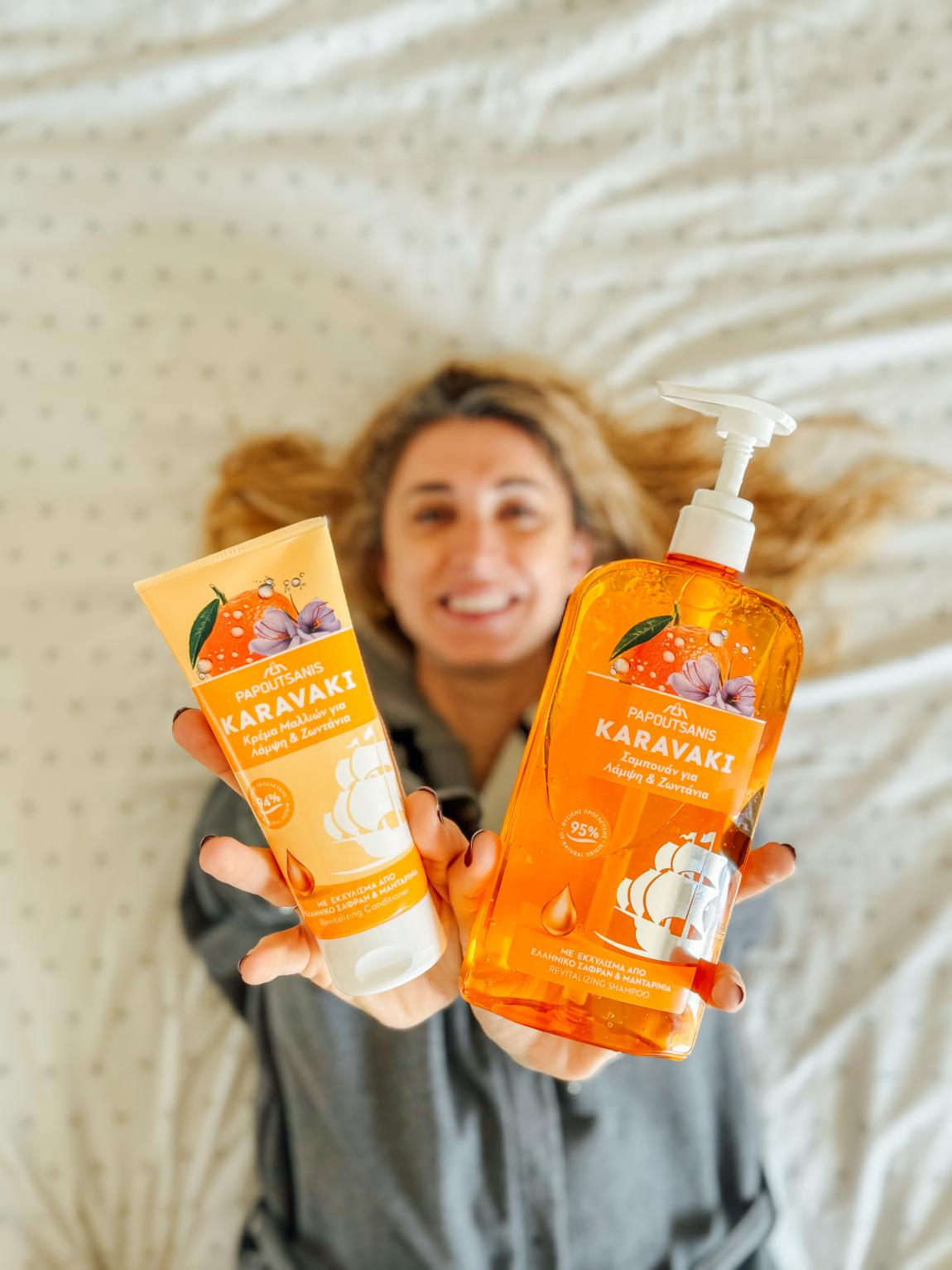 Σας προτείνω να δοκιμάσετε το νέο σαμπουάν KARAVAKI PAPOUTSANIS για Λάμψη και Ζωντάνια! Χάρη στην απαλή του σύνθεση, με 95% συστατικά φυσικής προέλευσης και ενεργή φυτική κερατίνη, ενδυναμώνει τη φυσική προστατευτική στρώση της τρίχας, διατηρώντας την ελαστικότητά της και μειώνει το φριζάρισμα. Επιπλέον, το εκχύλισμα από ελληνικό σαφράν είναι ιδιαίτερα ευεργετικό, αφήνοντας τα μαλλιά σας απαλά και λαμπερά ενώ το εκχύλισμα μανταρινιού, τα αναζωογονεί και τα ενδυναμώνει. Δεν ξέρω αν είστε έτοιμες για συγκλονιστικά μεταξένια μαλλιά!