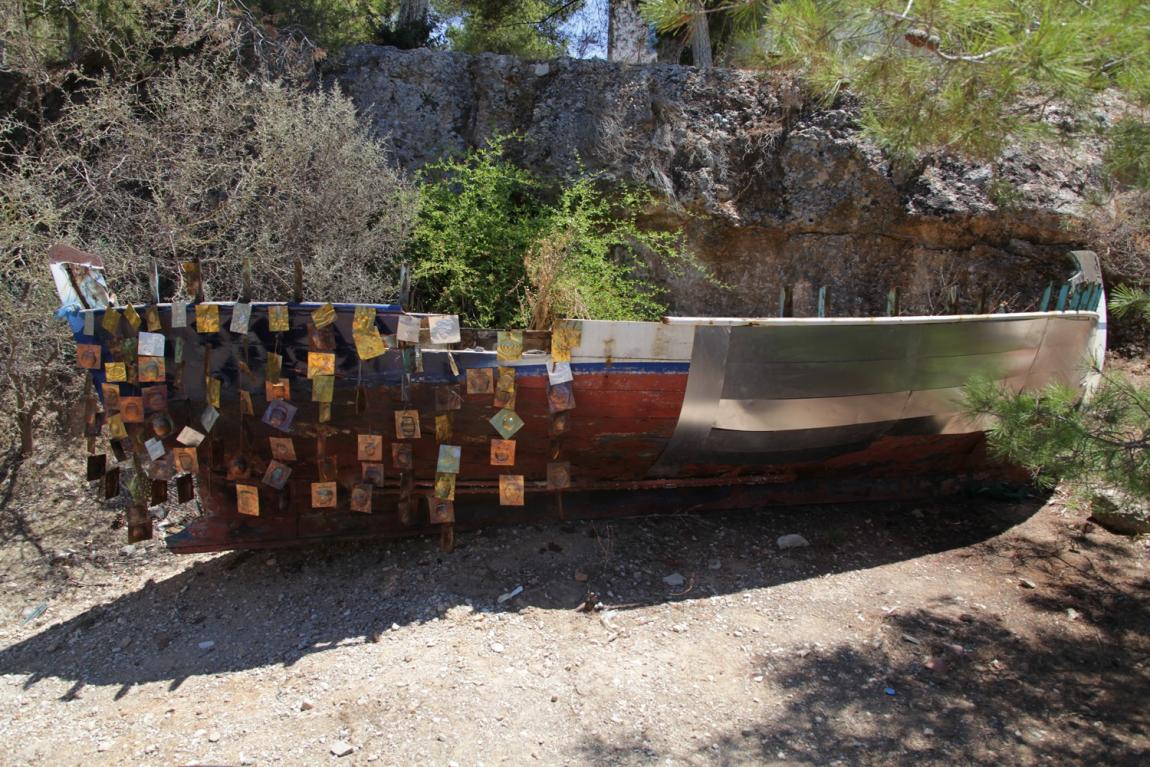 Η κατασκευή του Γιάννη Λασηθιωτάκη είναι η υπόμνηση ενός σκελετού καραβιού απογυμνωμένου από το περίβλημά του και ταυτόχρονα μια αναφορά στη ζωή και στον θάνατο, στην ονειροπόληση, στη νοσταλγία και στη μνήμη. Στην ανάγκη του ανθρώπου να εξερευνήσει το άγνωστο ταξιδεύοντας, πέρα από κάθε χρονικό και τοπικό όριο. Οι αναζητήσεις του πάνω στην έννοια του άυλου και της γραμμής ως πρωτογενούς, ουσιαστικού και βασικού δομικού στοιχείου, τον οδήγησαν στις Σπέτσες με την κραταιά ναυτική παράδοση, στη δημιουργία ενός έργου του οποίου τα ελάχιστα αρχετυπικά γραμμικά στοιχεία παραπέμπουν στην τέχνη και στη μαστοριά των καραβομαραγκών.