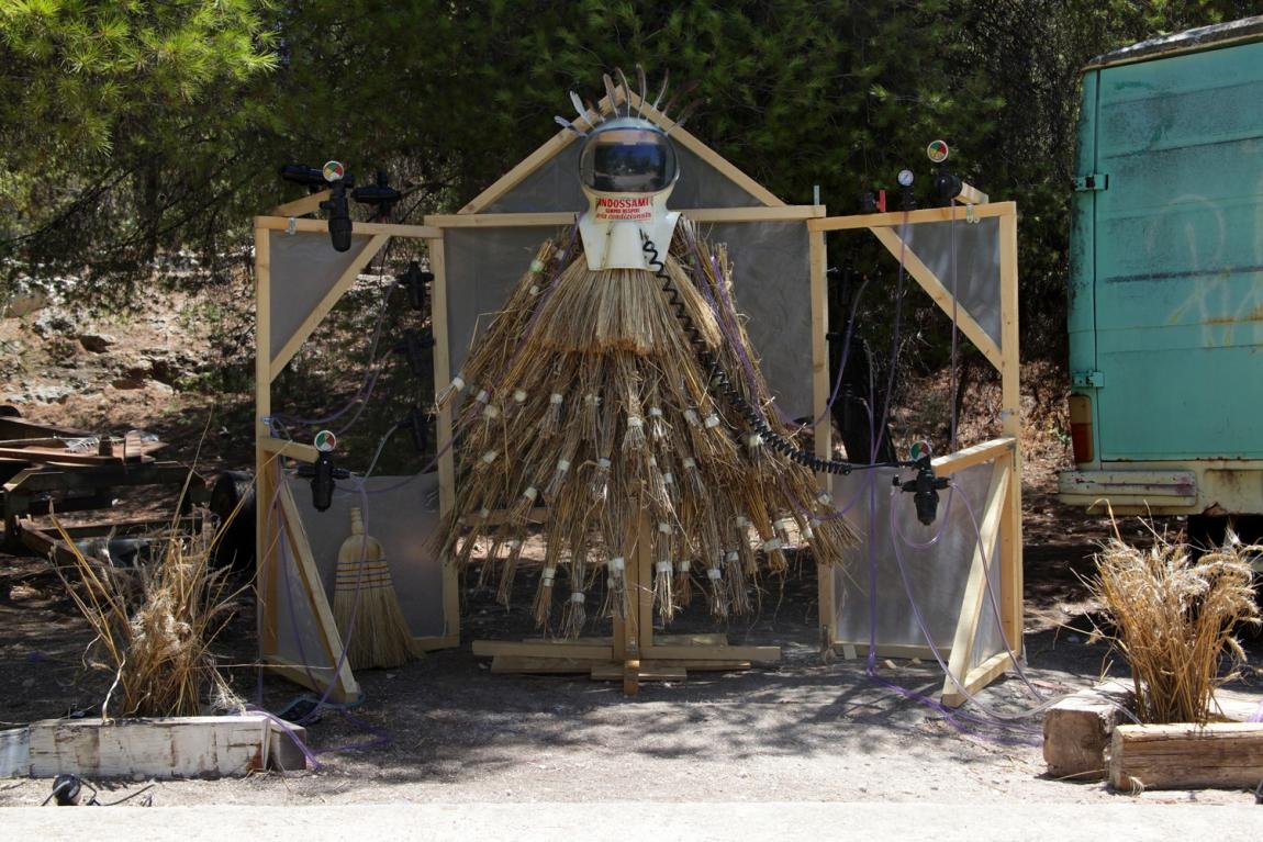 Στο έργο Greenlab του Πέτρου Ευσταθιάδη ξεδιπλώνεται μια ιστορία επιβίωσης. Με ποιους τρόπους μπορεί να ξεφύγει ο άνθρωπος από τον σύγχρονο κόσμο και να νιώσει ξανά ασφαλής; Διερευνώντας αυτό το ερώτημα, ο καλλιτέχνης δημιουργεί μια αυτοσχέδια κατασκευή φτιαγμένη από ετερόκλητα υλικά, η οποία παραπέμπει σε κατοικία και τόπο καλλιέργειας μαζί. Ένα αυτάρκες κι όμως εξωστρεφές σύμπαν, που συνδυάζει το παράξενο και το οικείο, το ιδεώδες και το απτό.