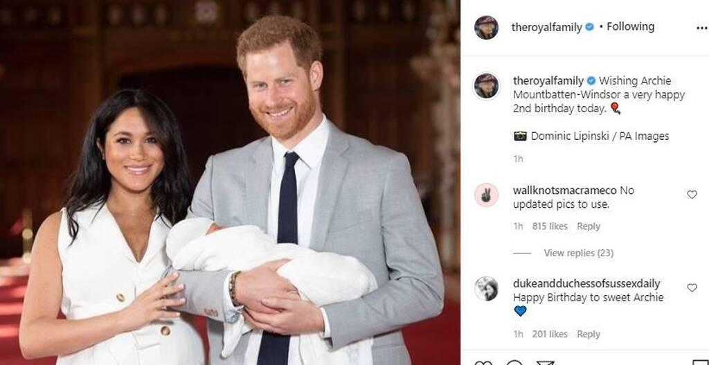 Στις 6 Μαΐου 2021 ο μικρός Άρτσι, γιος της Μέγκαν Μαρκλ και του πρίγκιπα Χάρι, έγινε δύο ετών. Σύσσωμη η βασιλική οικογένεια έσπευσε να του ευχηθεί και από τα social media account.
