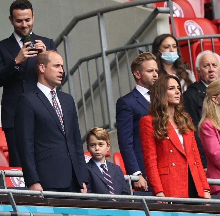 Ο πρίγκιπας William, η Kate Middleton και ο 7χρονος γιος τους πανηγύρισαν τη νίκη της Αγγλίας εναντίον της Γερμανίας στο πλαίσιο του Euro 2020. Η οικογένεια τραγούδησε τον Εθνικό Ύμνο και χειροκρότησε την ομάδα μαζί με τον κόσμο που παρακολούθησε από το Wembley τον ποδοσφαιρικό αγώνα.