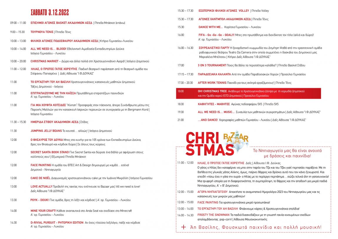 Γι ‘αυτό,τo Σάββατο 03.12.2022 από τις 10.00 το πρωί έως και τις 11.00 το βράδυ, σας περιμένουμε να ανταλλάξουμε ευχές και να ζήσουμε όλοι μαζί τη γιορτινή ατμόσφαιρα του Χριστουγεννιάτικου Bazaar του Αθλητικού μας Συλλόγου| ΑΣΕΔ.