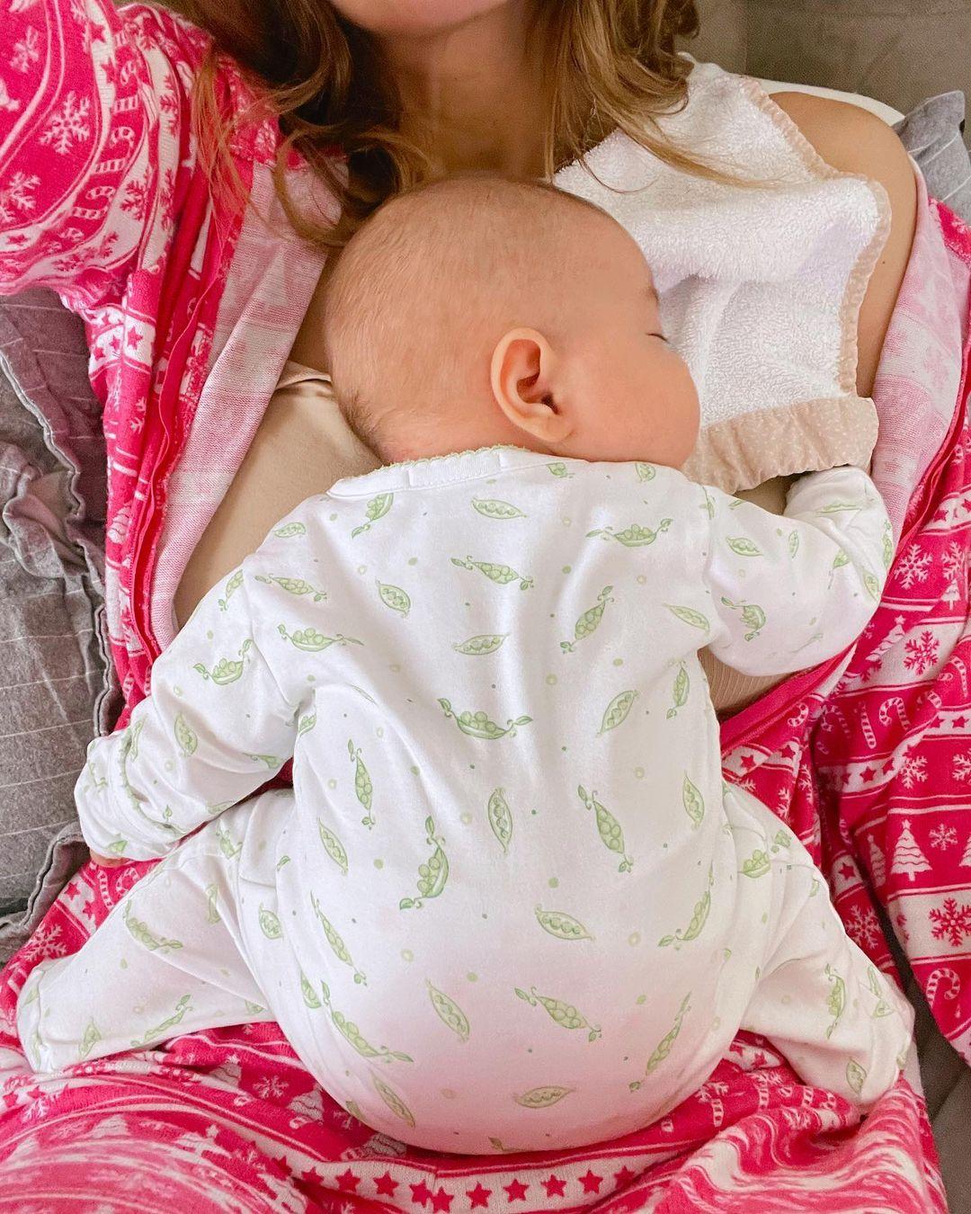 Μπορεί η νέα μαμά να μην βγήκε στο χιόνι να φωτογραφηθεί με τη νεογέννητη κόρη της και οι δυο τους να προτίμησαν τη ζεστασιά του σπιτιού τους, αλλά χθες ήταν η πρώτη φορά που η διάσημη influencer έδειξε στους followers της το πρόσωπο της μικρής, γράφοντας στη λεζάντα της φωτογραφίας: «Δύο μηνών μπιζέλι χορεύει τσιφτετέλι απλωμένο σαν αστερίας πάνω στην κοιλιά που την χώραγε σε ένα κοντινό «κάποτε». Α ρε φασόλι άρχοντα, πάρε μας τα υπάρχοντα».