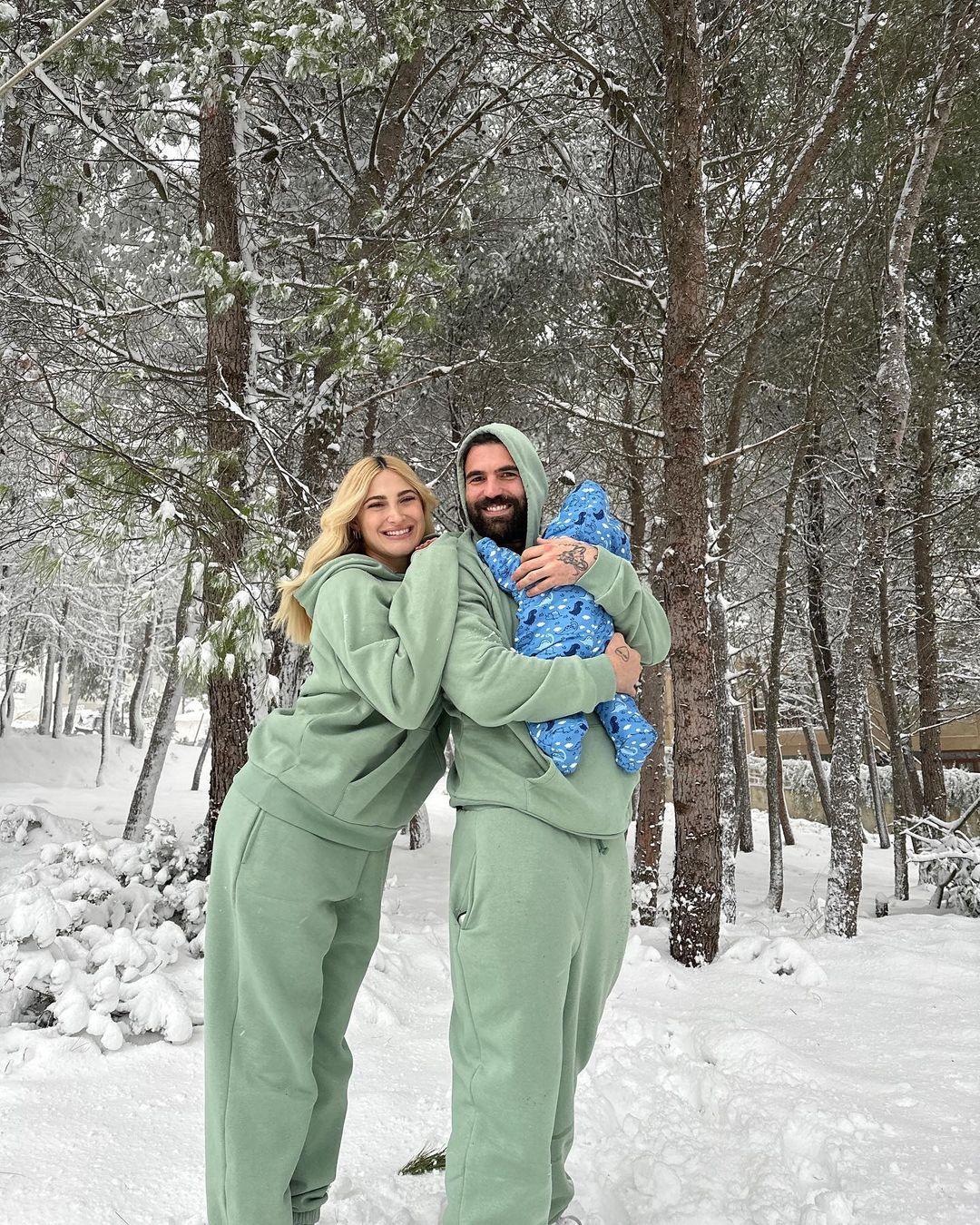Οι νέοι γονείς Ιωάννα Τούνη και Δημήτρης Αλεξάνδρου άφησαν για λίγο τη Θεσσαλονίκη και αυτό το διάστημα βρίσκονται μαζί με το μωράκι τους στο σπίτι τους στον Διόνυσο Αττικής, όπου το χιόνι είχε αρχίσει να πέφτει πυκνό από προχθές το βράδυ. Το ζευγάρι δεν έχασε την ευκαιρία να ποζάρει με τον σχεδόν 30 ημερών γιο τους, στην πρώτη τους οικογενειακή φωτογραφία στο Instagram.