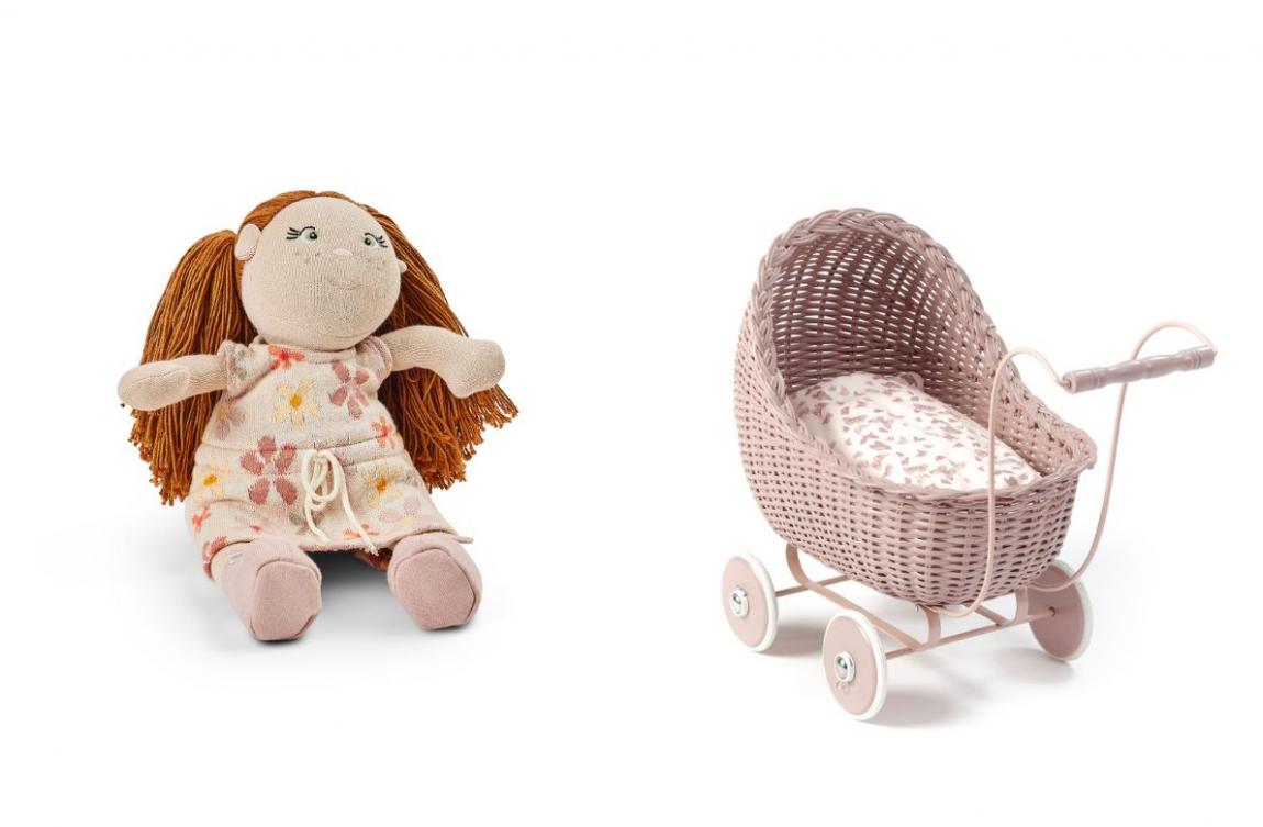 # Πρώτα στη λίστα μπαίνουν τα αγαπημένα μας παιχνίδια της Smallstuff, που δεν αποχωριζόμαστε ποτέ! Η μαλακή, βαμβακερή κούκλα Rose με τα υπέροχα μαλλιά και το χειροποίητο πλεκτό καροτσάκι της είναι ιδανικά για παιχνίδι ρόλων.