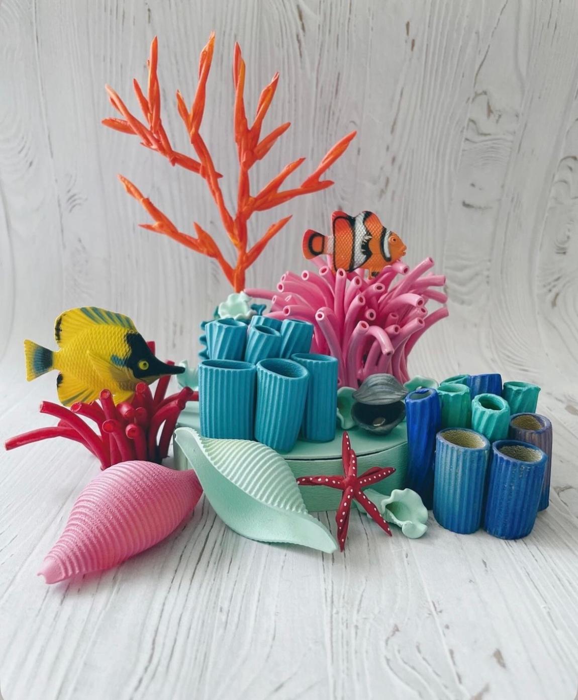 Αυτή τη φορά, η Σοφία Παπαφάνη και η Δώρα Χαρατσάρη, δημιουργοί του Κέντρου Ειδικής Αγωγής Λογοcare, μαζί με τους έμπειρους συνεργάτες τους, καλούν τα παιδιά σε μια δημιουργική... «βουτιά» στον βυθό, όπου θα φτιάξουν τον δικό τους κοραλλιογενή ύφαλο! Πώς; Με τη φαντασία τους και χρησιμοποιώντας απλά υλικά, όπως πλαστελίνη, πηλό και μακαρόνια, που θα τα μετατρέψουν σε έναν πολύχρωμο θαλάσσιο μικρόκοσμο.