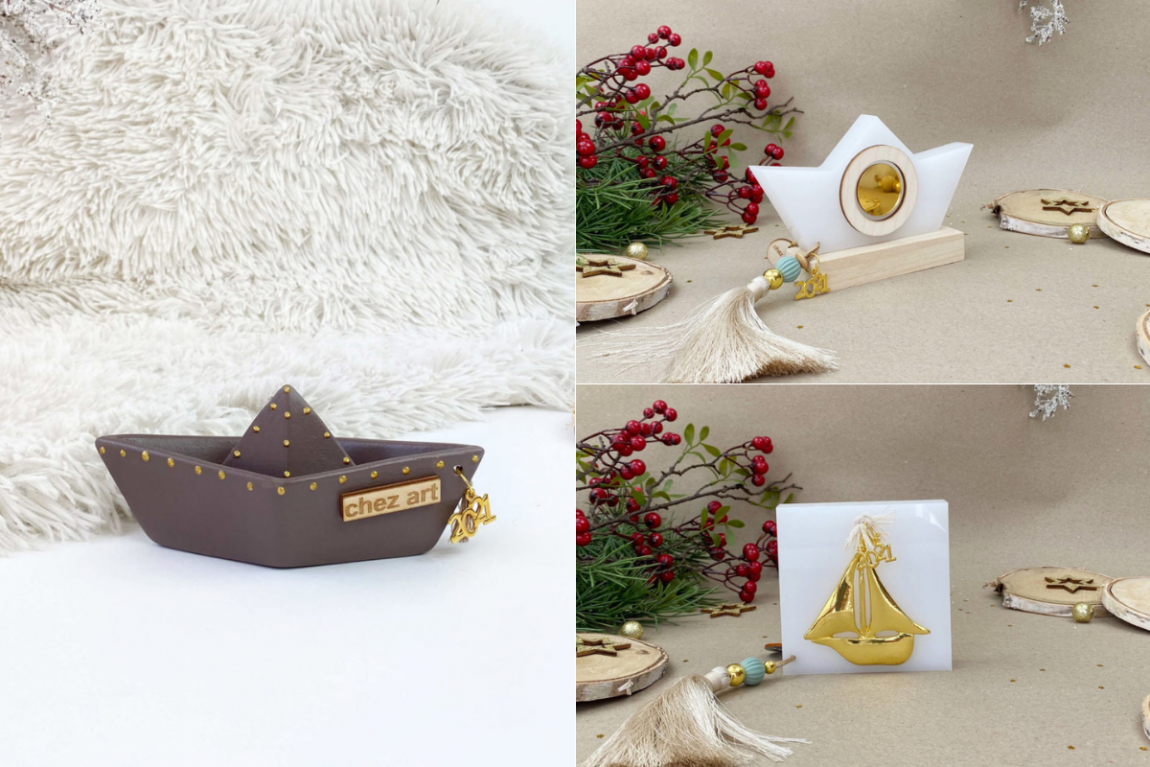 Κάτω αριστερά: Γούρι Luckycharm Plexiglass Boat με χρωματικές αντιθέσεις που που το κάνουν εντυπωσιακό.