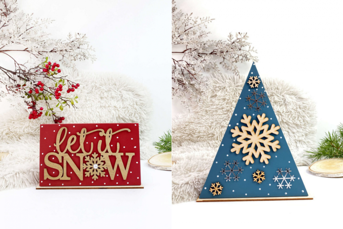 The more, the merrier. Η διακόσμησή σας θα φανεί πιο πλούσια με την κόκκινη ξύλινη πλακέτα λόγω του όγκου και των χρωματικών αντιθέσεών της ή με το μπλε τριγωνικό δεντράκι. Τοποθετήστε τα στην πιο όμορφη γωνιά του σπιτιού σας και αφήστε τα να χαρίσουν στον χώρο άπλετη χριστουγεννιάτικη ατμόσφαιρα.