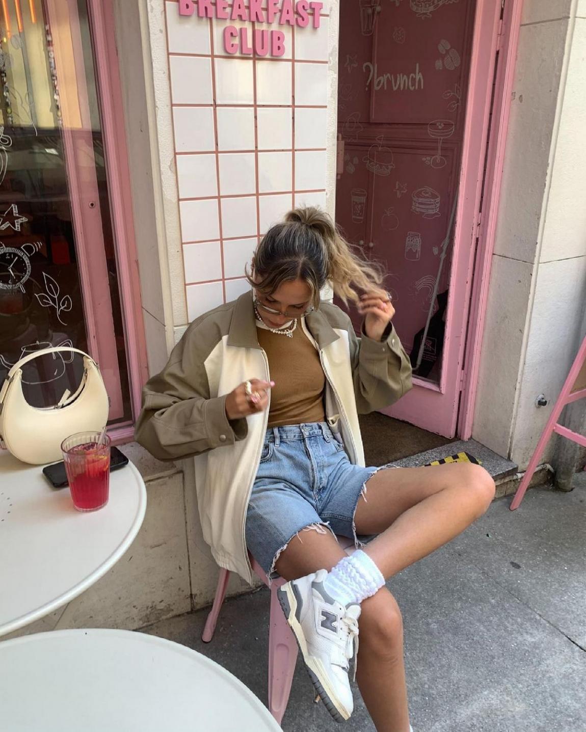 Από εδώ και στο εξής τα απογεύματα και τα Σαββατοκύριακα στην πόλη θα έχουν στο πρόγραμμα και παιδική χαρά. Για να είστε άνετη και fashionable, πείτε «ναι» σε ένα jean σορτς, σε λευκά sneakers και ένα μονόχρωμο top. Extra tip: Το look είναι ιδανικό και για τις πρώτες ημέρες του φθινοπώρου. Κι αν έχει λίγη δροσιά… απογειώστε το με ένα bomber jacket!