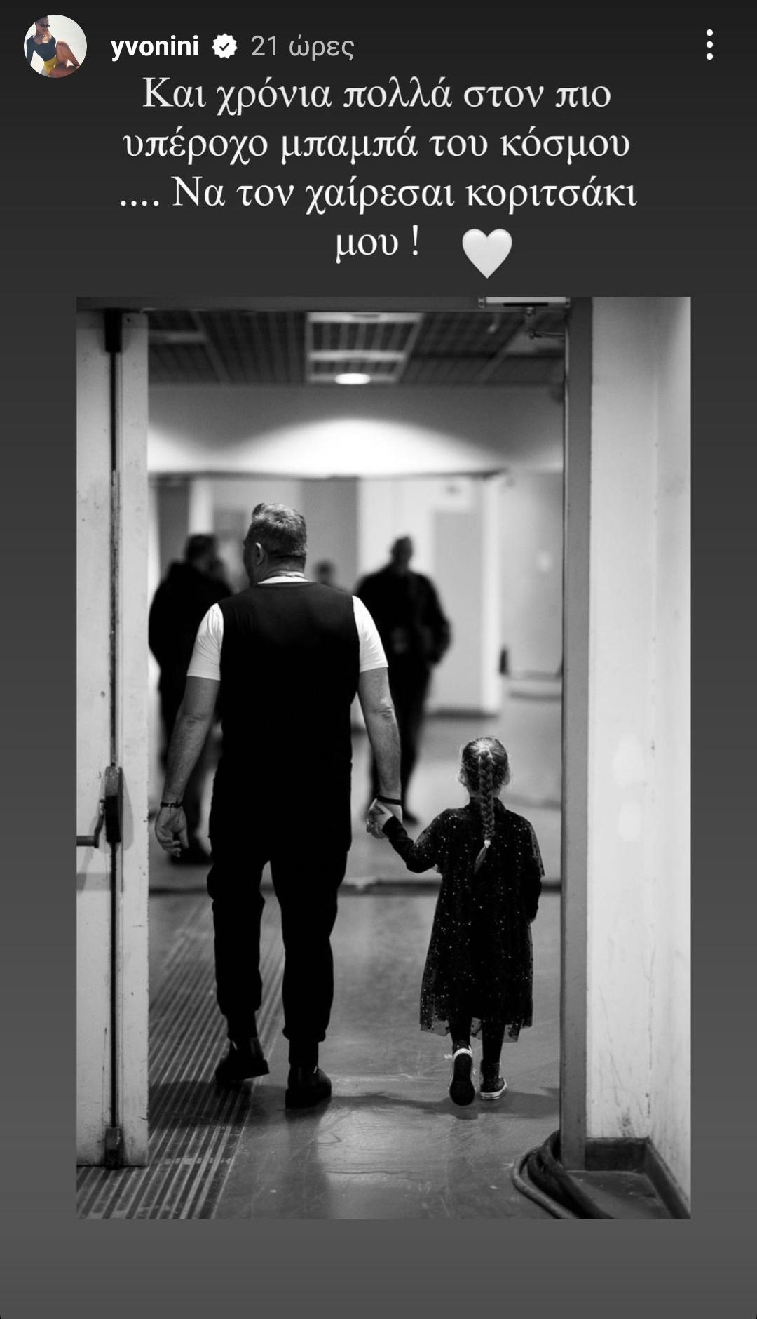 «Χρόνια πολλά στον πιο υπέροχο μπαμπά του κόσμου... Να τον χαίρεσαι κοριτσάκι μου!», έγραψε η Υβόννη Μπόσνιακ στη φωτογραφία με τον Αντώνη Ρέμο να περπατά κρατώντας από το χέρι τη μικρή Ελένη, με αφορμή τη Γιορτή του Πατέρα.