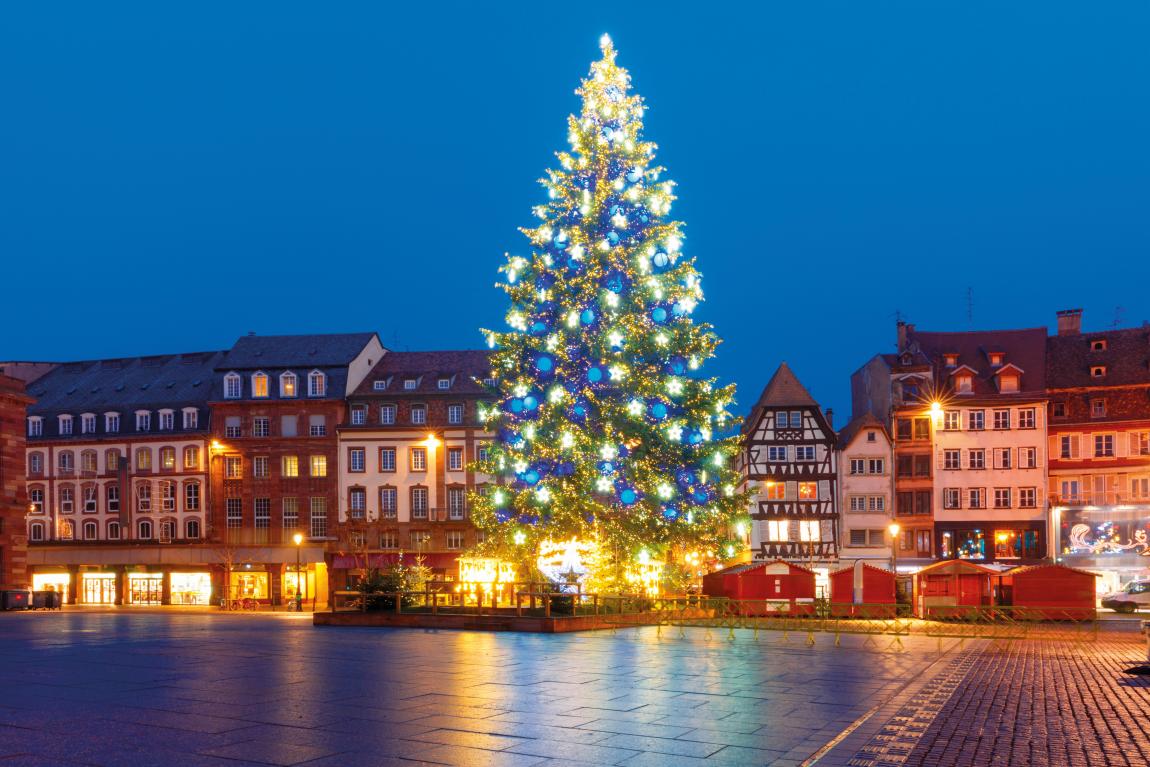 Συνεχίζουμε με… βαρκάδα! Επιβιβαζόμαστε σε πλοιάριο για μία ξενάγηση στα φωτισμένα κανάλια του ποταμού Ιλ και στη μαγευτική συνοικία «Μικρή Γαλλία», όπου κάθε της γωνιά είναι στολισμένη με γιρλάντες, φαναράκια και μικρά δέντρα. Μόλις πέσει η νύχτα, κατευθυνόμαστε προς την κεντρική πλατεία του Στρασβούργου, Place Kléber. Εκεί, θα φωτογραφηθούμε μπροστά από το τεράστιο χριστουγεννιάτικο δέντρο –ύψους άνω των 30 μέτρων–, με τα χιλιάδες λαμπάκια και στολίδια. Και οι πιο τολμηροί, μικροί και μεγάλοι, θα κάνουν πατινάζ στο εντυπωσιακό παγοδρόμιο που έχει στηθεί ακριβώς δίπλα.