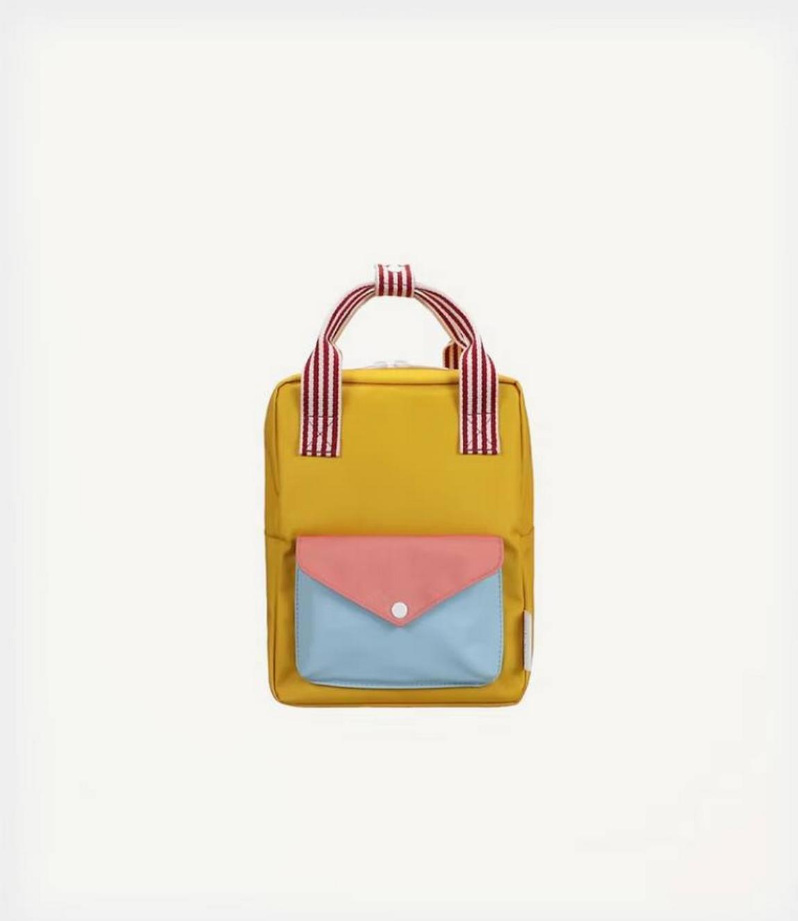 #3 Sticky Lemon Τσάντα Πλάτης small | Envelope | Submarine Yellow: Μια τσάντα-όαση χρωμάτων! Διαθέτει εξωτερική μπροστινή τσέπη, αδιάβροχη επένδυση με χειροποίητο σχέδιο και ρυθμιζόμενους ιμάντες ώμου. Στο εσωτερικό θα βρείτε ένα λάστιχο που λειτουργεί ως θήκη για μπουκάλι και μια τσέπη που καλύπτει όλη την πίσω πλευρά και κλείνει με βέλκρο. Περιλαμβάνει, επίσης, και ειδικό καρτελάκι για να γράψετε τα στοιχεία του παιδιού.
