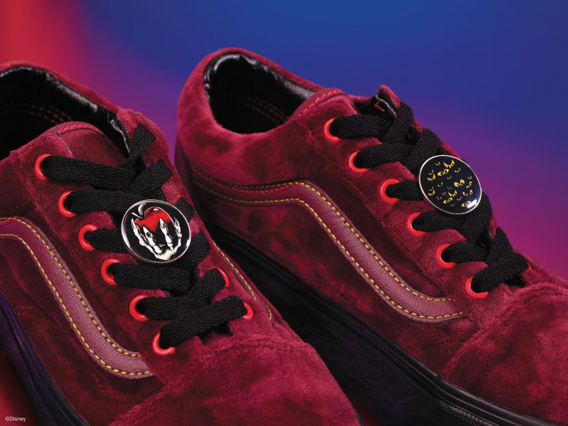 Η σειρά Disney, Villains Disney x Vans πρωτοπορεί με το Sk8-Hi™ και το “απόκοσμο” σχέδιο που είναι εμπνευσμένο από τους κακούς της Disney. Η σειρά έχει ως βάση canvas υλικά και φέρει μαύρα suede ανάγλυφα σχέδια στο πλαϊνόκαι μεσαίο μέρος του παπουτσιού, με τις φιγούρες των Scar, Maleficent, Ursula, Jafar και πολλών άλλων κακών της Disney. Το παιδικό μοντέλο Sk8-Hi Villains έχει παρόμοιες σχεδιαστικές λεπτομέρειες. Το Knu Skool Disney100 Scar αναπαριστά τον αδίστακτο Scar και διαθέτει μαύρες και πορτοκαλί αποχρώσεις με ένα κόκκινο σύμβολο που παραπέμπει στη χαρακτηριστική ουλή του χαρακτήρα. Στη σόλα του Knu Skool εμφανίζεται το πορτρέτο του τρομερού Scar με τα ψυχρά πράσινα μάτια. Τέλος, το Old Skool Stackform Disney100, στην απόχρωση Poison Apple,επαναπροσδιορίζει την πρωτοποριακή πλατφόρμα με ανάγλυφα βελούδινα στοιχεία και αποτυπωμένο κείμενο στη φτέρνα, εμπνευσμένο από την ταινία της Disney Animation "Η Χιονάτη και οι επτά νάνοι".