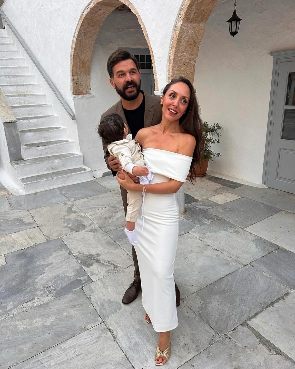 Το μυστήριο πραγματοποιήθηκε στη Μητρόπολη της Ύδρας, ενώ εκτός από την Τόνια Σωτηροπούλου, λάδι στον μικρό έβαλε και η Χρύσα Λαΐου. Νονές και μαμά επέλεξαν matchy matchy looks για την περίσταση, φορώντας off-white σύνολα, σε διαφορετικό στιλ βέβαια η κάθε μία!