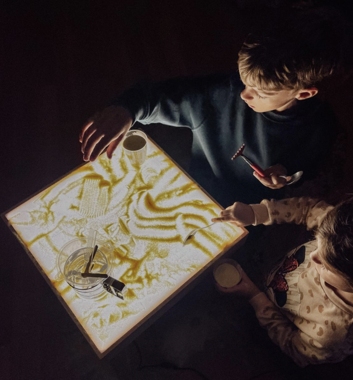 Τα παιδιά θα μπορούν να χρησιμοποιούν σέσουλες, μικρά κουταλάκια, τσιμπίδες και κόσκινο για να ανακαλύπτουν τα αντικείμενα.