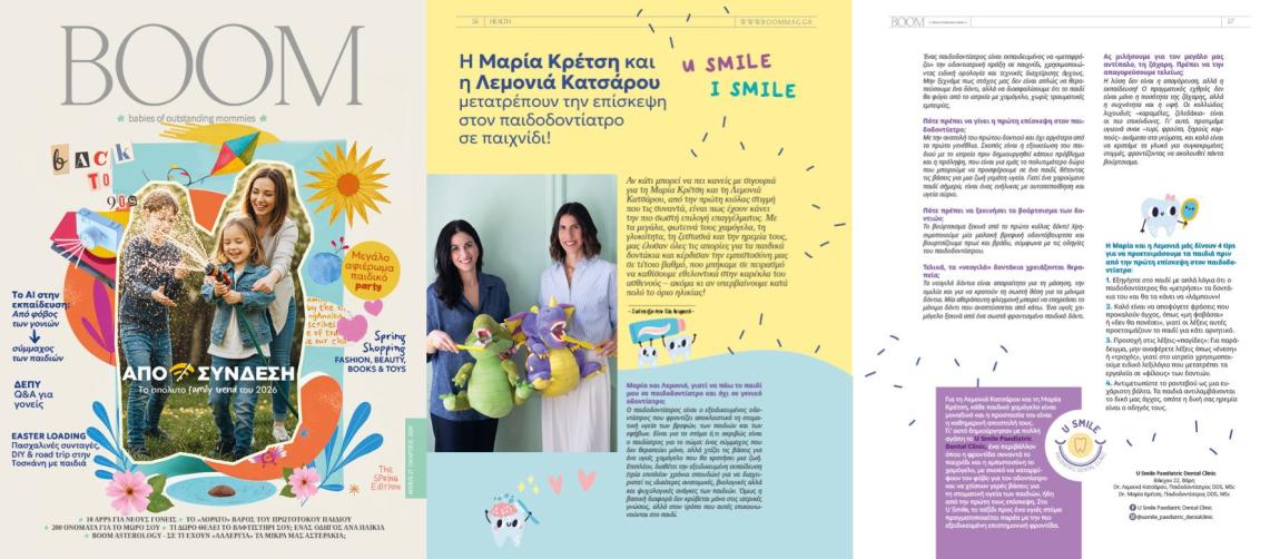 BOOM note: Για τη Λεμονιά Κατσάρου και τη Μαρία Κρέτση, κάθε παιδικό χαμόγελο είναι μοναδικό και η προστασία του είναι η καθημερινή αποστολή τους. Γι’ αυτό δημιούργησαν με πολλή αγάπη το U Smile Paediatric Dental Clinic, ένα περιβάλλον όπου η φροντίδα συναντά το παιχνίδι και η εμπιστοσύνη το χαμόγελο, με σκοπό να καταρρίψουν τον φόβο για τον οδοντίατρο και να χτίσουν γερές βάσεις για τη στοματική υγεία των παιδιών, ήδη από την πρώτη τους επίσκεψη. Στο U Smile, το ταξίδι προς ένα υγιές στόμα πραγματοποιείται παρέα με την πιο εξειδικευμένη επιστημονική φροντίδα.