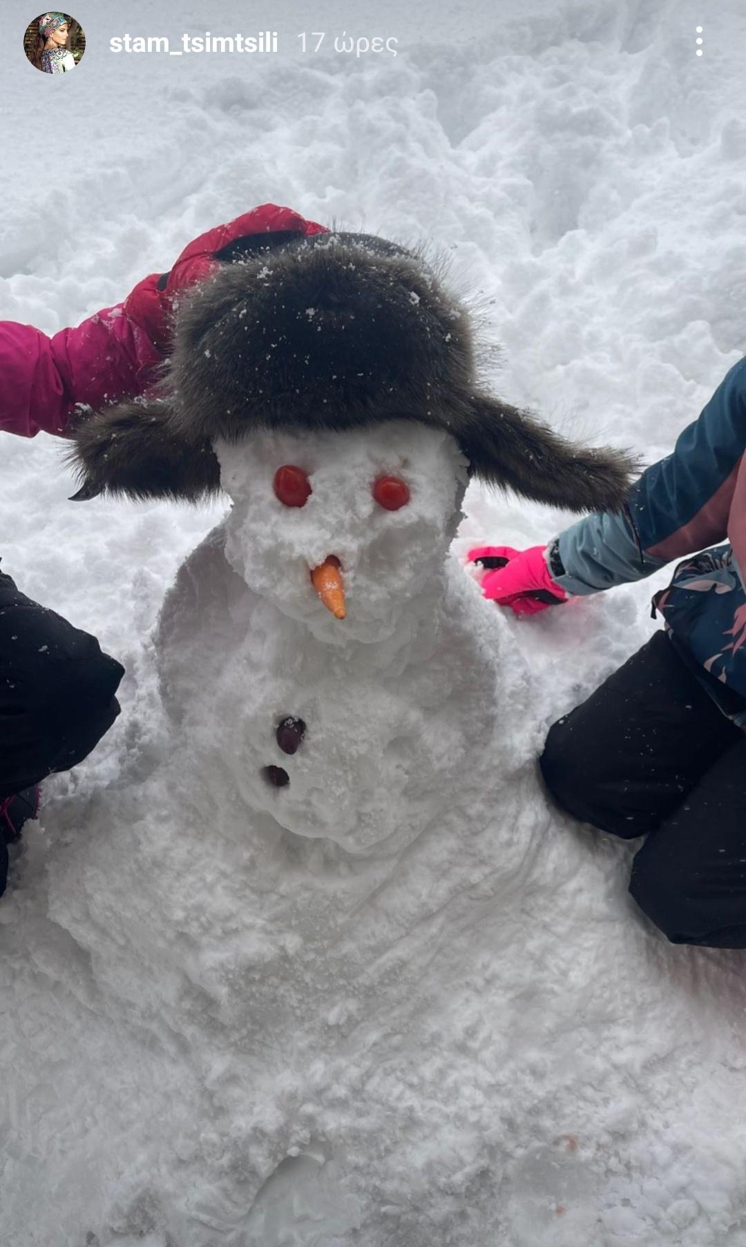 Η Ευδοκία Ρουμελιώτη μαζί με τον σύζυγό της και τον 7χρονο γιο τους, Δημήτρη, έφτιαξαν έναν τεράστιο χιονάνθρωπο και δημοσίευσαν φωτογραφία από το «γλυπτό» τους στο Instagram. «Το γλυπτό μας ολοκληρώθηκε!!!!», έγραψε περήφανη η ευτυχισμένη μαμά.
