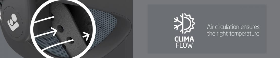 • Clima Flow: Ειδικοί αεραγωγοί–εσωτερική επένδυση και υφάσματα που «αναπνέουν», για να νιώθει το παιδί σας άνετα και στη σωστή θερμοκρασία.