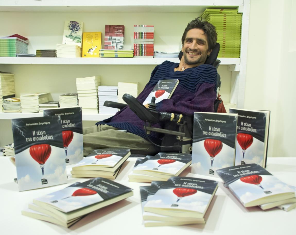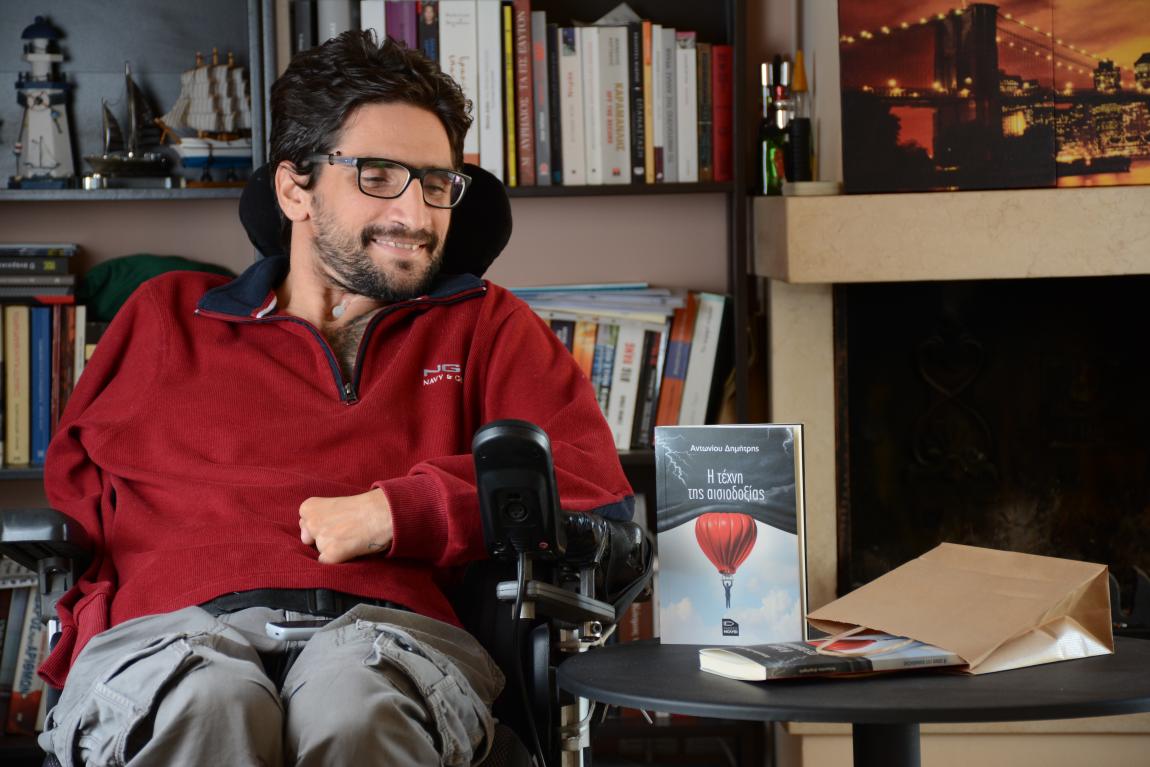 Ο Δημήτρης Αντωνίου, στα τριανταένα του χρόνια, δε σταματάει στιγμή να δημιουργεί, παρά το πολύ σοβαρό τροχαίο ατύχημα που τον καθήλωσε σε αναπηρικό αμαξίδιο από τα δεκαέξι του χρόνια. Πραγματοποίησε σε μόλις τέσσερα χρόνια τις σπουδές του στο τμήμα φυσικής του Α.Π.Θ και συνέχισε με μεταπτυχιακές σπουδές στην οικονομική επιστήμη στο Πανεπιστήμιο Μακεδονίας.