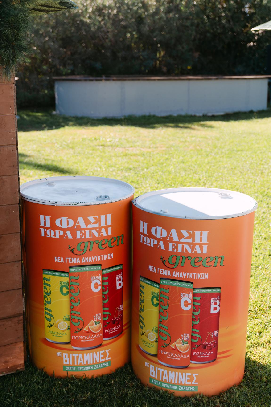 Τι ήπιαμε; Green πορτοκαλάδα, με πλούσια γεύση πορτοκαλιού με προσθήκη βιταμίνης C με ή και χωρίς ανθρακικό, Green λεμονάδα, με προσθήκη βιταμίνης C και Green βυσσινάδα, με την προσθήκη του συμπλέγματος βιταμινών Β.