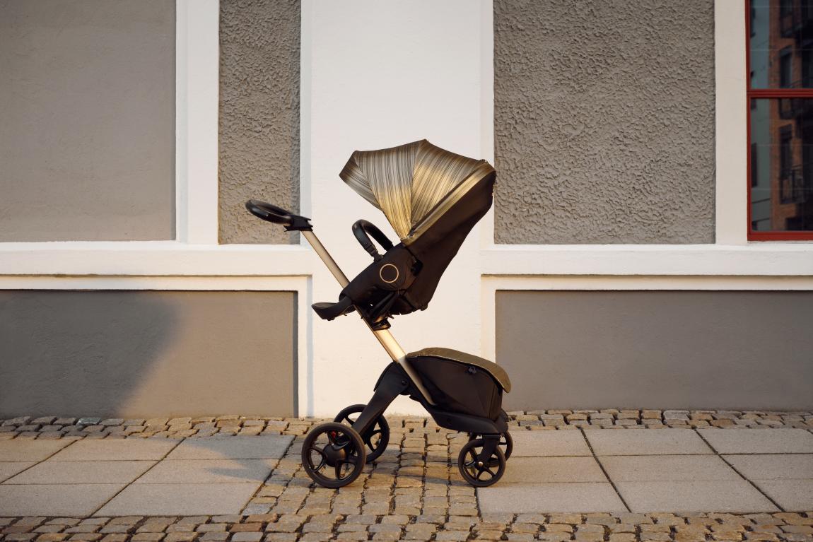 Με μοναδικό εντυπωσιακό design, το καρότσι Stokke® Xplory® X είναι μια επιλογή για συνειδητοποιημένους γονείς που θέλουν να ανακαλύψουν τον κόσμο παραμένοντας σε απόλυτη σύνδεση και επαφή με το μικρό τους. Για όσους αναζητούν εκλεπτυσμένη κομψότητα, η νέα Gold έκδοση ανεβάζει τη σειρά Stokke® Xplory® X Stroller στο επόμενο επίπεδο, καθώς ένα αστραφτερό χρυσό χρώμα καλύπτει την κουκούλα του καθίσματος και την τσάντα αγορών, σε συνδυασμό με ένα ματ χρυσό σασί που έρχεται σε αρμονική αντίθεση με το πληθωρικό μαύρο που προσδίδει βάθος και ισορροπία στην χρωματική παλέτα.
